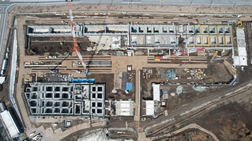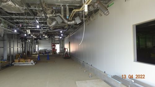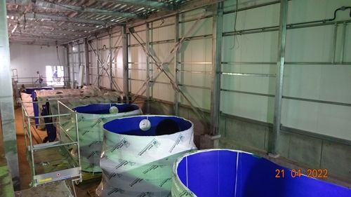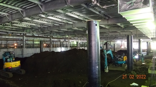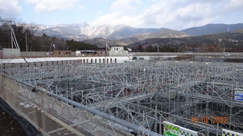 孵化・幼魚場施設に酸素溶解システム(ODS)を設置し、現在、建物の鉄骨を起工しています。